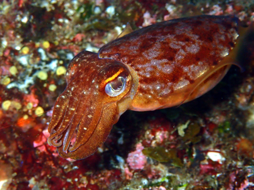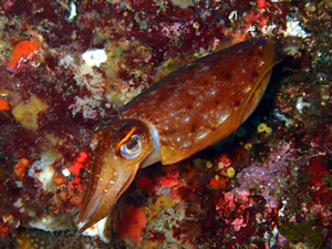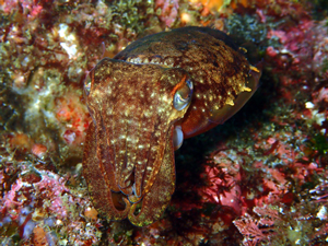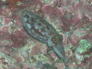 | 岩礁域.コウイカ類、みな同じに見えるから困る。 一般的な認識だと目の上に眉毛あったらこいつ的な感じでしたが、今は違う? まじわけわからん・・・。色や模様もころころ環境や行動時で変わるし、もうちょっとはっきりした分かりやすい特徴はないものか。ちっこいコウイカはなんでもこいつ扱いしていたので反省。でも、こんなん書いてる今ですら良く分からん! |