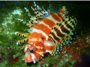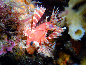 わかりずらい写真しかなかった。しかもこいつは日中いつも下向いている。泳ぎ回らず、岩やカイメン等に寄り添いながらいて胸鰭をヒラヒラさせている。個体数は少ないので出会えればグッドな奴。