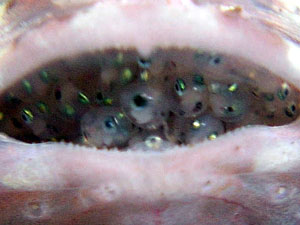 マウスブリーダー(口内保育)で孵化するまで口の中で卵を守る。 |