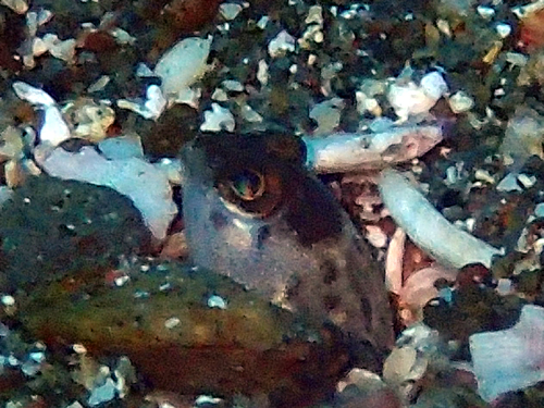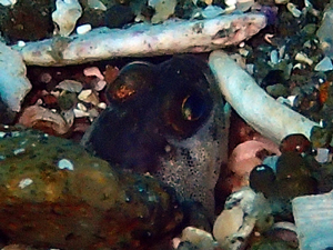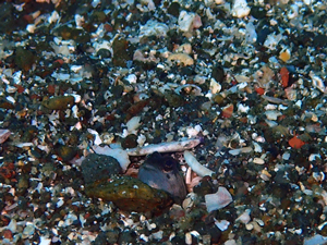 | 2026年1月ビーチの水深約10m地点でちっこい綺麗な真ん丸の縦穴がポツポツ開いているのを発見し中覗き込んだらこいつがいた!いままでビーチにいたのか突如現れたのかは?なんせビーチにいるとは思ってもおらず・・・。 コロニーのようでいくつもの巣穴があり、こんなにいるのか!と驚いたほど。 五島根には多数いるが完全ガレバだし、砂地にいるとは思わなかった。 五島根は20m以下ばかりだし。 ムシクイというだけあって、ムシクイ模様があるようですが、なんせでてこいなし、小さいし、1cmないくらいだしで、ホソミアゴアマダイかもしれないが、なんとなくそれっぽいからムシクイとしている。 |