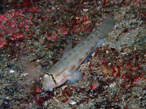 また、胸ヒレ上部(肩)に黄色い点があるのも特徴。