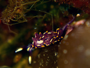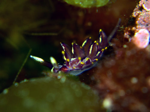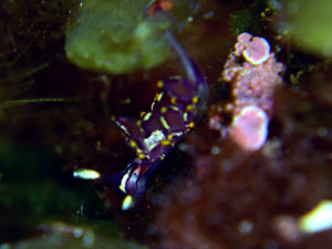 紫色や赤紫色の突起で一部白。触角は先端に向かい半分以上白。