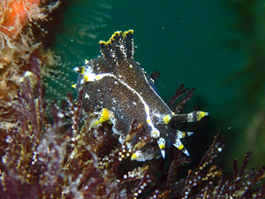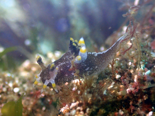 いとうではビーチの転石や土嚢袋についたコケムシ付近で見つかる。