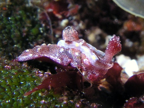 体色は赤褐色で細かい白点が点在。変な形してます。
