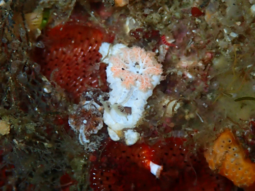 上部に白いヒダヒダ。鰓はオレンジ(白色もあり)触覚は付け根は白で上部は褐色。伊東ではあまり見かけない。ホヤを食すらしい。