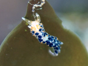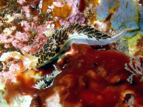 体色は白。触角と口触手は薄い橙色。突起は黒く先端が橙。