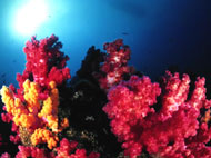 潮流の影響を受け水中には色とりどりの鮮やかなコーラル群が広がっています。